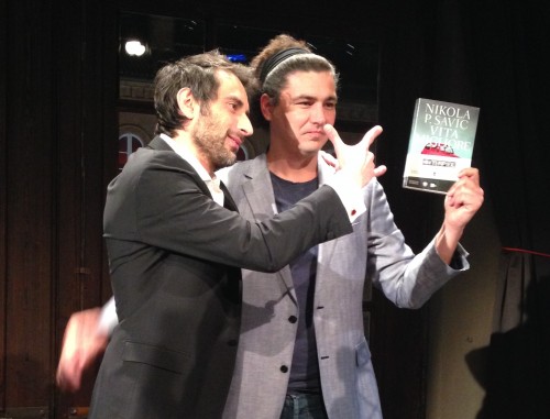 Nikola Savic con Massimo Coppola mostra “Vita Migliore”, romanzo che Bompiani pubblicherà in centomila copie.